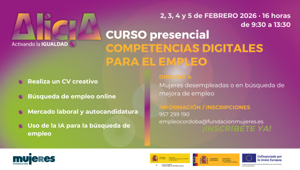 Más información en el teléfono 927 299 190 y en el email empleocordoba@fundacionmujeres.es