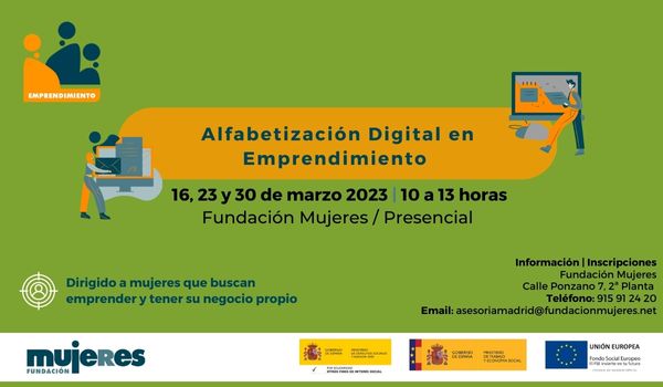 Dirigido a: Mujeres que tengan una idea de negocio, que se encuentren en situación de desempleo y estén contemplando el autoempleo o que ya tengan iniciada una actividad empresarial y que quieran mejorar sus habilidades digitales en temas de emprendimiento.