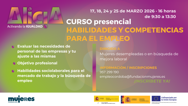 Más información en el teléfono 927 299 190 y en el email empleocordoba@fundacionmujeres.es