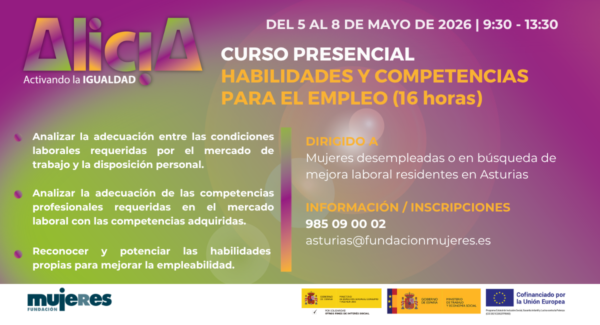 Para más información contacta con el teléfono 985 09 00 02 o escribe a asturias@fundacionmujeres.es