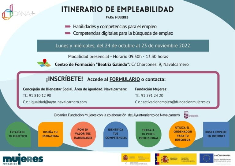 – Fundación Mujeres: 91 591 24 20 (ext. 1001) / activacionempleo@fundacionmujeres.es