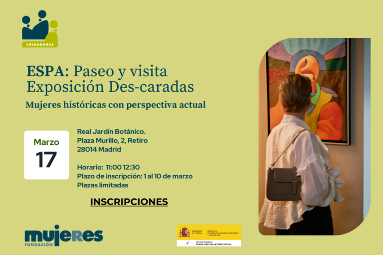 Más información: 91 591 24 20 ext. 1014 o en el correo: cuidadanas@fundacionmujeres.es