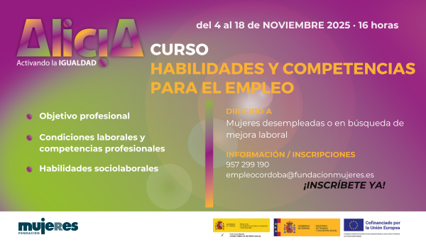 Más información en el teléfono 927 299 190 y en el email empleocordoba@fundacionmujeres.es
