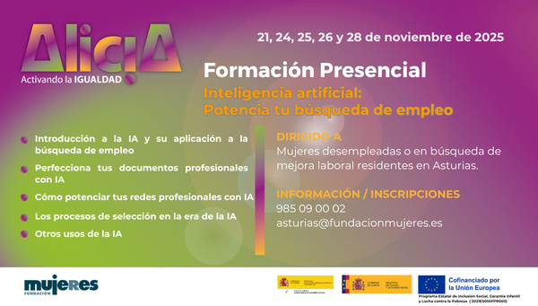 Dirigido a: Mujeres desempleadas o en búsqueda de mejora laboral residentes en Asturias.