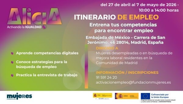 Dirigido a: Mujeres desempleadas o en búsqueda de mejora laboral, jóvenes sin experiencia, mayores de 45 años y mujeres de familias monoparentales.