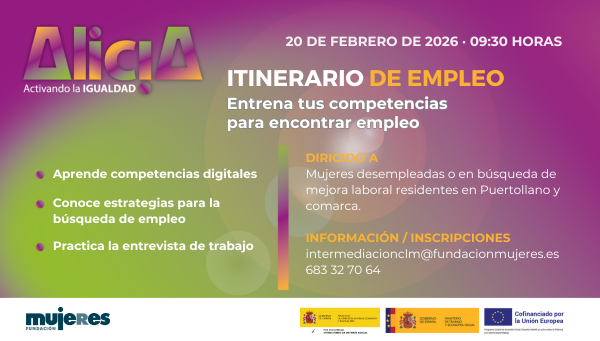 Para más información e inscripciones: contacta en el teléfono 683 32 70 64 o manda un mail a intermediacionclm@fundacionmujeres.es