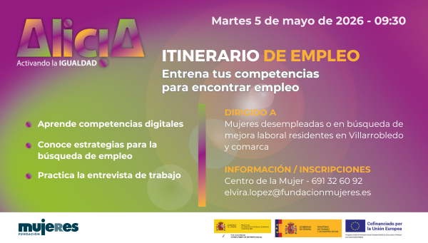 Para más información contacta en el teléfono 969 30 06 44 / 691 32 60 92, email intermediacionclm@fundacionmujeres.es o aquí