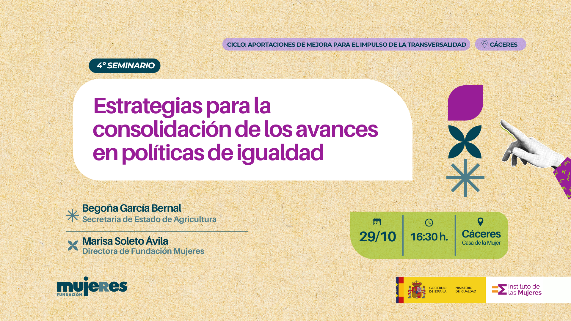 Esta actividad forma parte del proyecto “Aportaciones de mejora para el impulso de la transversalidad” financiado por el Instituto de las Mujeres y desarrollado por Fundación Mujeres.