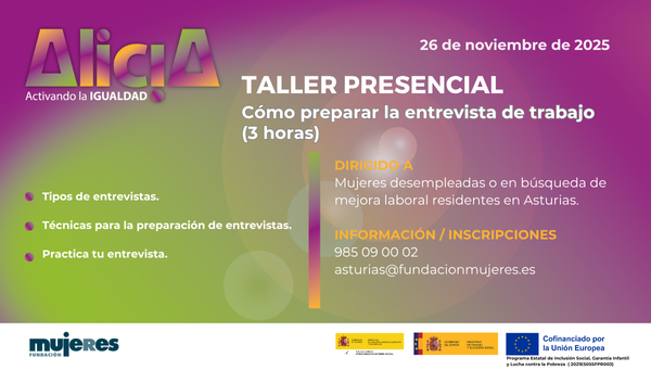 Para más información contacta con el teléfono 985 09 00 02 o escribe a asturias@fundacionmujeres.es