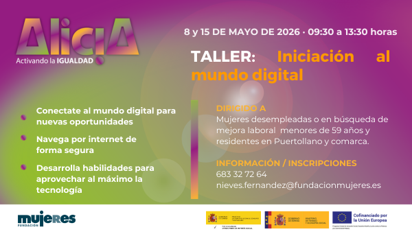 Dirigido a: Mujeres residentes en Puertollano y comarca, menores de 60 años, interesadas en mejorar sus competencias digitales para la búsqueda de empleo.