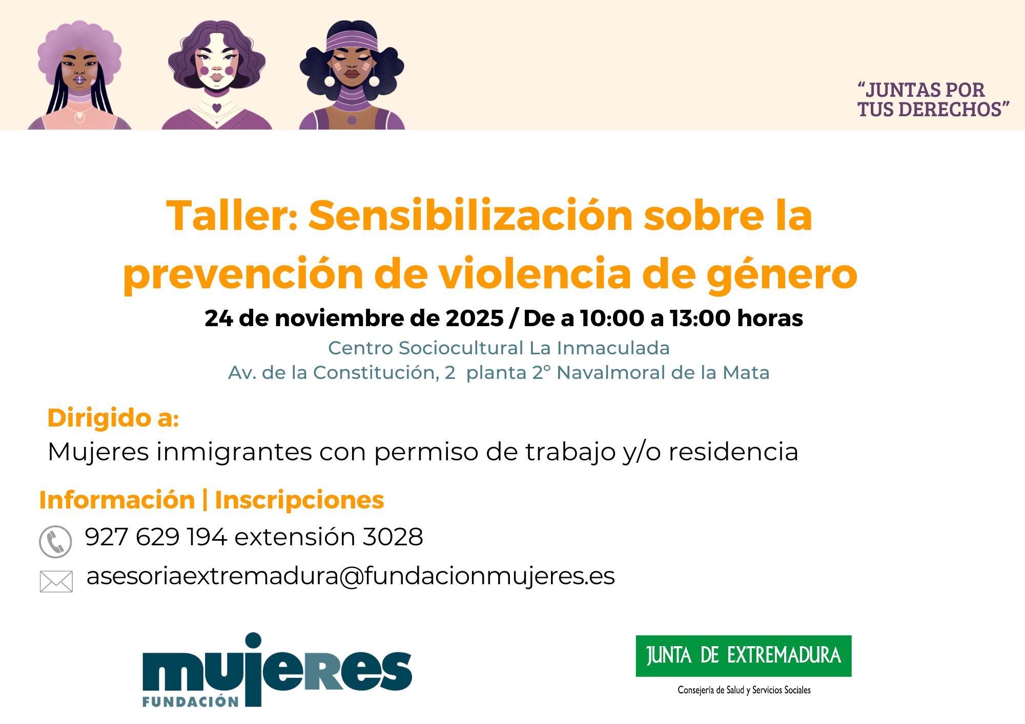 Si necesitas más información, escríbenos a asesoriaextremadura@fundacionmujeres.es o llámanos al 927 629 194 (ext. 3028)