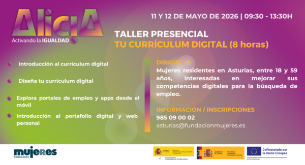Dirigido a: Mujeres residentes en Asturias, entre 18 y 59 años, interesadas en mejorar sus competencias digitales para la búsqueda de empleo.
