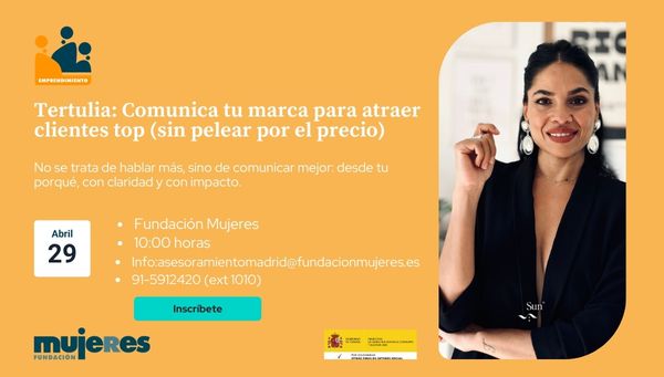 Bajo el título “Comunica tu marca para atraer clientes top (sin pelear por el precio)” organizamos esta tertulia dinamizada por Sundas Farooq, fundadora de Sun FR con la que ayuda a marcas lideradas por mujeres a volverse inolvidables — a través de una comunicación clara, una voz de marca magnética y un copy auténtico que conecte.