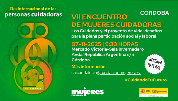 Con motivo de la celebración del Día Internacional de las Personas Cuidadoras, Fundación Mujeres organiza el VII Encuentro de Mujeres Cuidadoras en Andalucía, con el título “Los Cuidados y el proyecto de vida: desafíos para la plena participación social y laboral”.