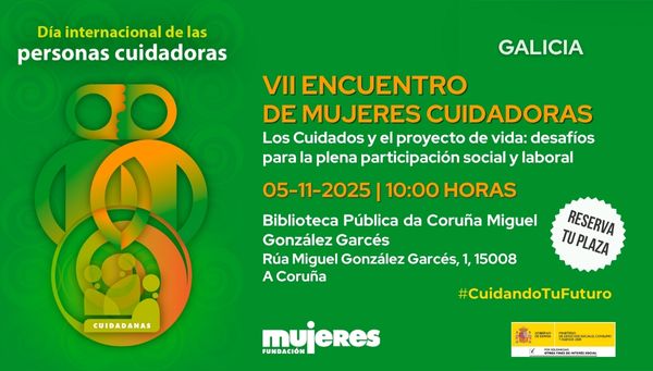 Conmemorando el Día Internacional de las Personas Cuidadoras, que tiene lugar cada 5 de noviembre, Fundación Mujeres organiza el VII Encuentro de Mujeres Cuidadoras en Galicia, con el título “Los cuidados y el proyecto de vida: desafíos para la plena participación social y laboral”, tiene como propósito reflexionar sobre los retos y desafíos que enfrentan las mujeres cuidadoras en su desarrollo personal y participación social y/o laboral, una etapa fundamental para avanzar hacia su bienestar, autonomía y pleno ejercicio de derechos.