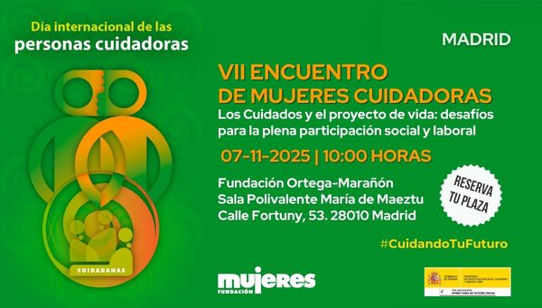 Conmemorando el Día Internacional de las Personas Cuidadoras, que tiene lugar cada 5 de noviembre, Fundación Mujeres organiza el VII Encuentro de Mujeres Cuidadoras en Madrid, con el título: “Los Cuidados y el proyecto de vida: desafíos para la plena participación social y laboral”, enmarcado en el Proyecto Empoderamiento de Mujeres Cuidadoras.