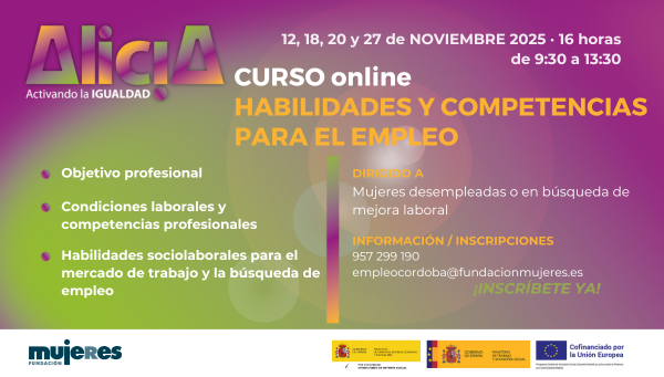 Más información en el teléfono 927 299 190 y en el email empleocordoba@fundacionmujeres.es