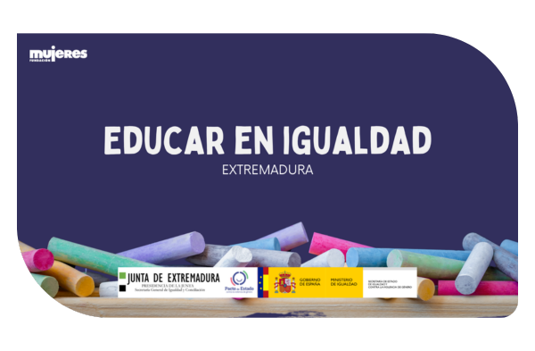 “Educar en Igualdad Extremadura” es un programa de Fundación Mujeres desarrollado gracias a los Fondos del Pacto de Estado contra la Violencia de Género, con cargo a los créditos recibidos por el Ministerio de Igualdad – Secretaría de Estado de Igualdad y para la Erradicación de la Violencia contra las Mujeres, y subvencionado por la Consejería de Presidencia, Interior y Diálogo Social. Ref.: PS020/2025.